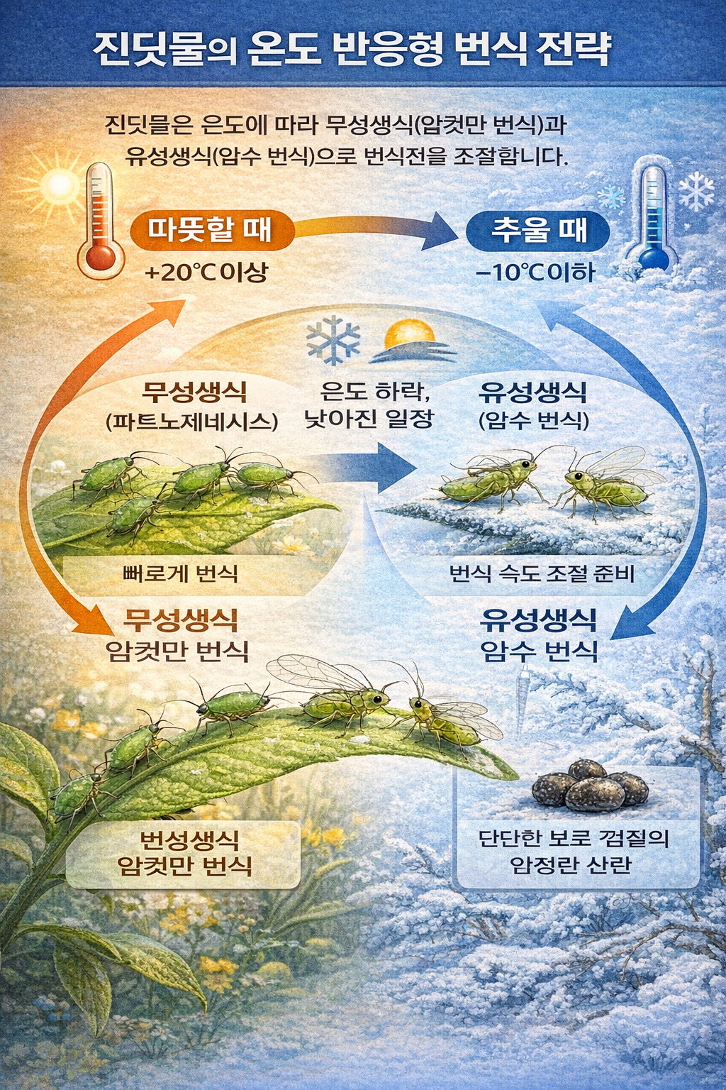 이 곤충은 환경 변화에 따라 번식 방식을 빠르게 조절하는 능력을 가지고 있다.